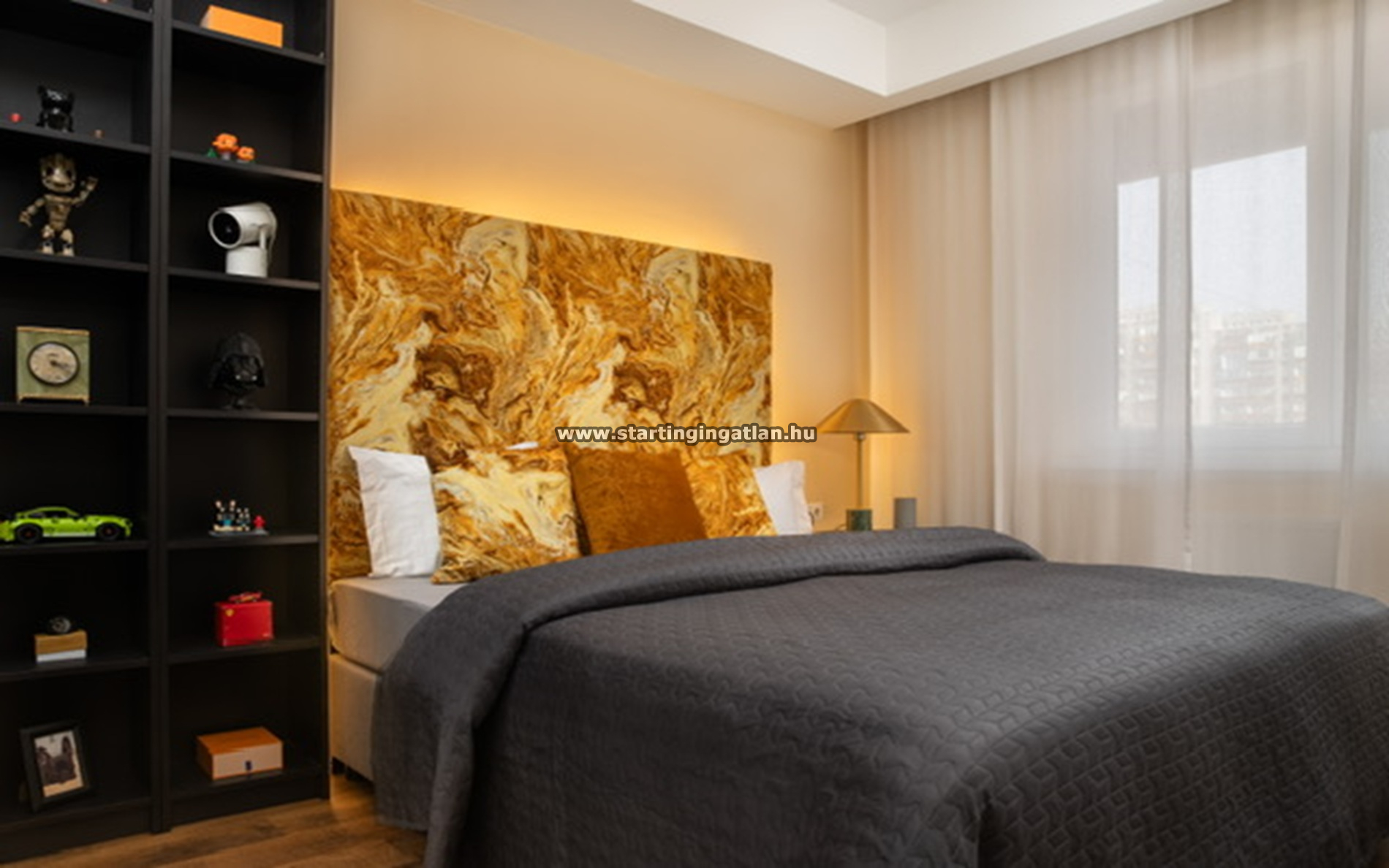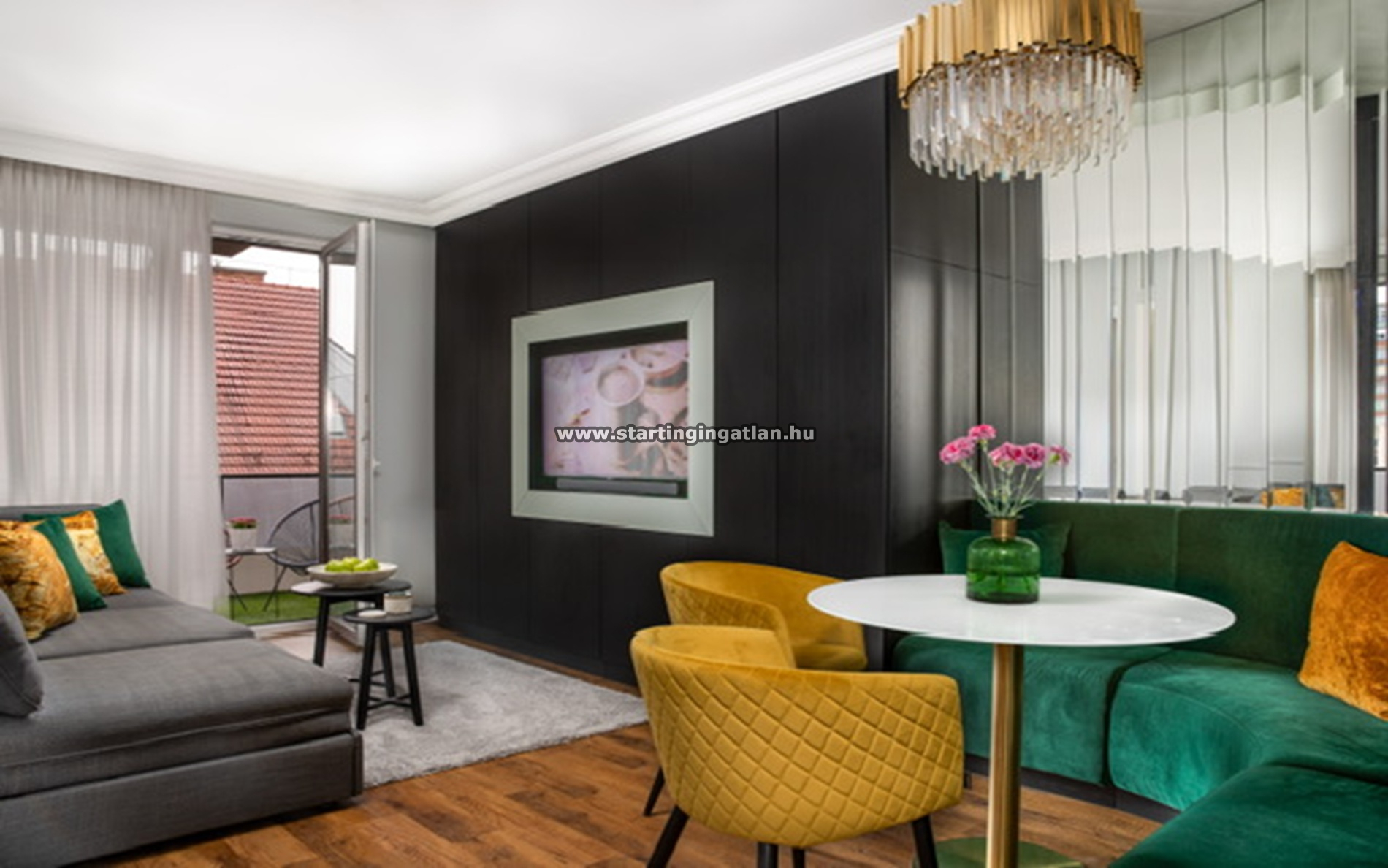 A lakás berendezéssel együtt kerül eladásra, a teremgarázs beállóhely ára tízmillió forint.