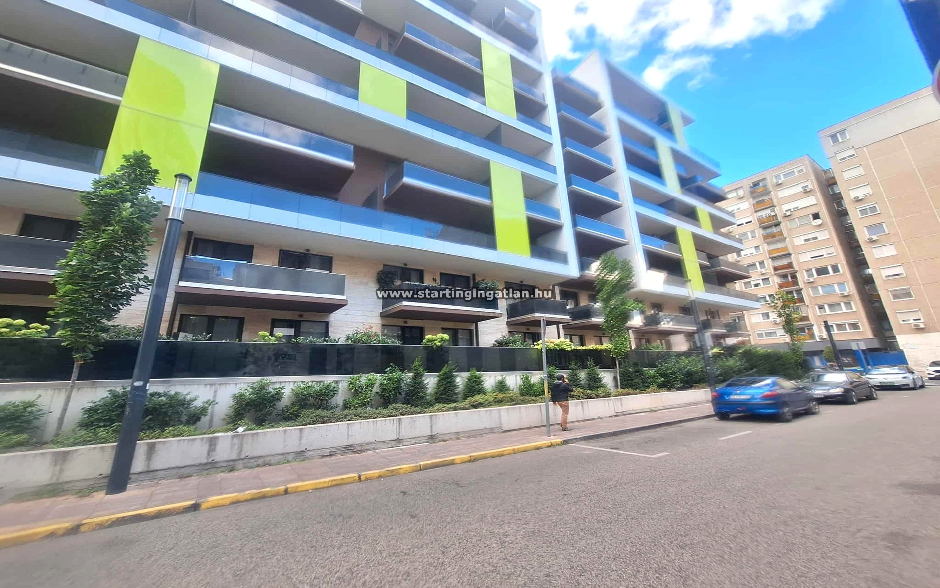 A tágas, húsz négyzetméteres sarokerkély csendes, zöldebb utcára néz, amely nyugodt kikapcsolódást biztosít a város lüktetése mellett.