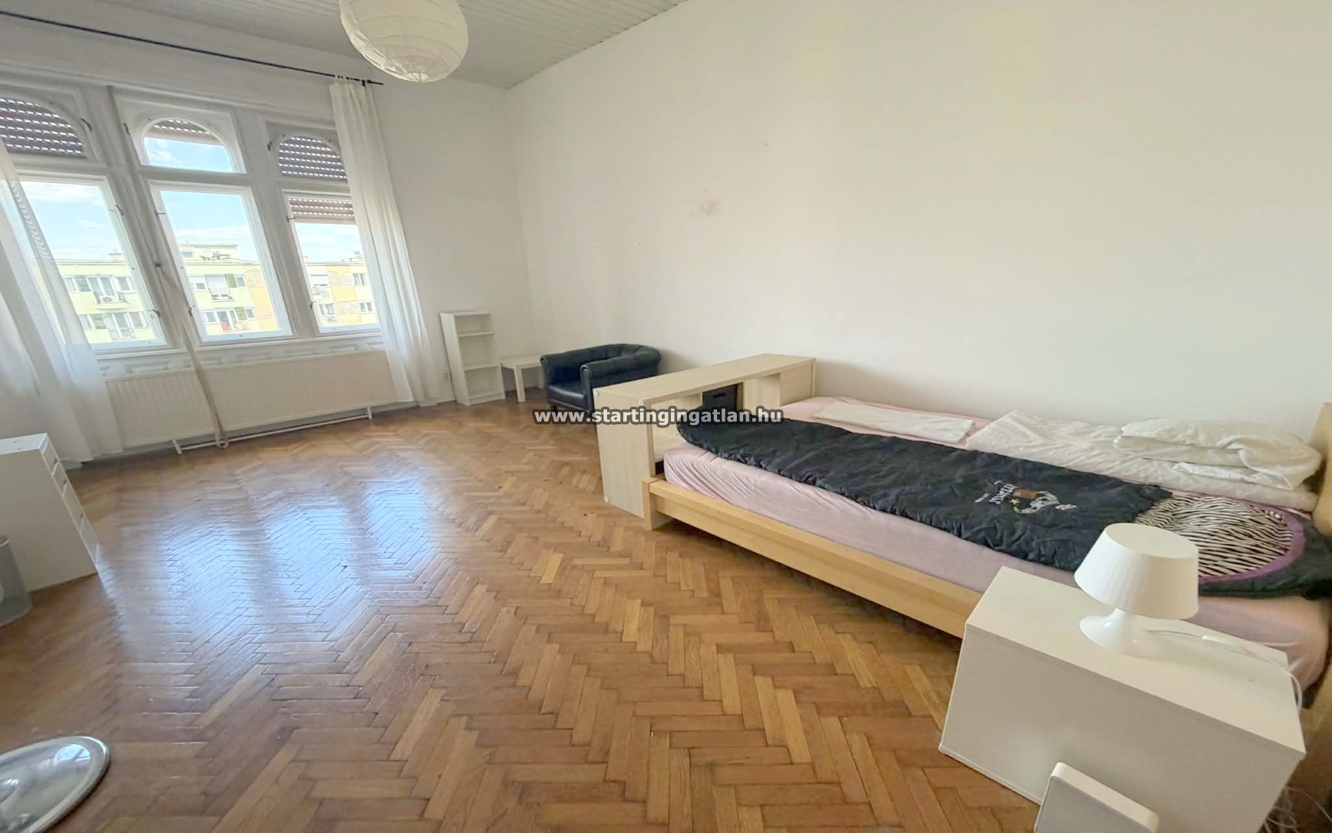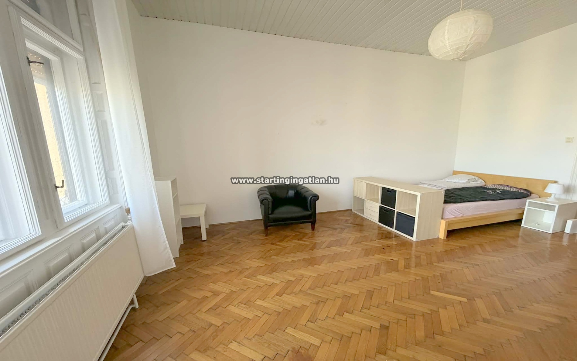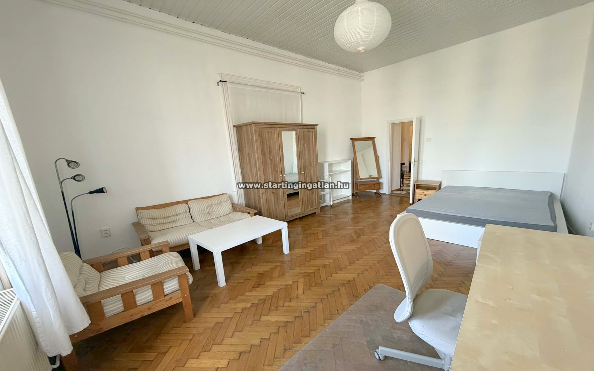 Tágas elrendezés: Két nagy méretű szoba, melyeket elegáns szárnyas ajtó köt össze, ugyanakkor külön bejárattal is rendelkeznek az előszobából – ideális akár bérbeadásra is.