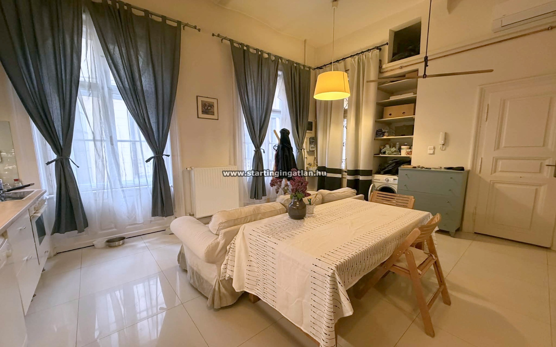 A praktikus elrendezésű, világos terek otthonos hangulatot teremtenek, ideális akár egy pár számára is.A teljesen gépesített és bútorozott lakás azonnali beköltözést tesz lehetővé – csak hozd a személyes dolgaidat, és már élvezheted is az új élettered kényelmét. A fürdőszoba zuhanyzós, egy légtérben található a toalettel.